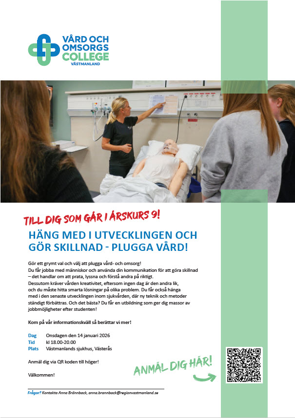 Känner du någon som ska söka till gymnasiet i Västerås 2026? Missa inte informationskvällen om vård- och omsorgsprogrammet.