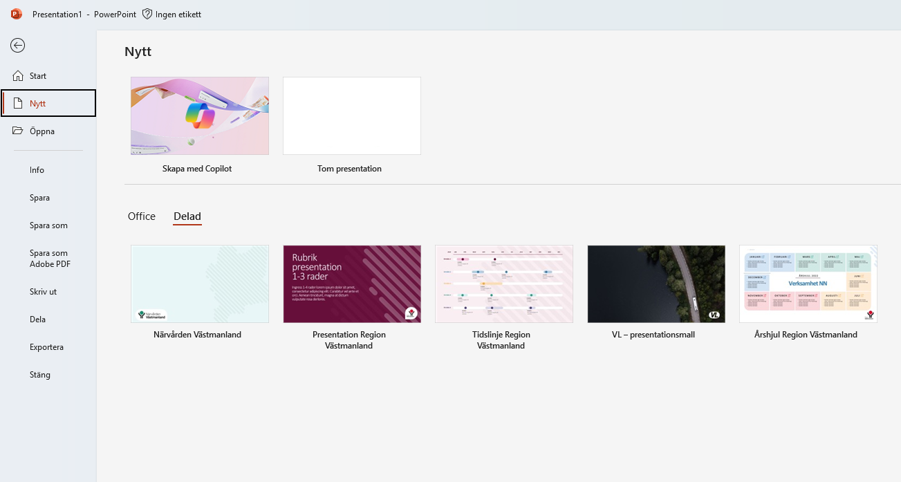 Mallarna finns som vanligt i PowerPoint när du klickar på "Nytt" under "Delad".