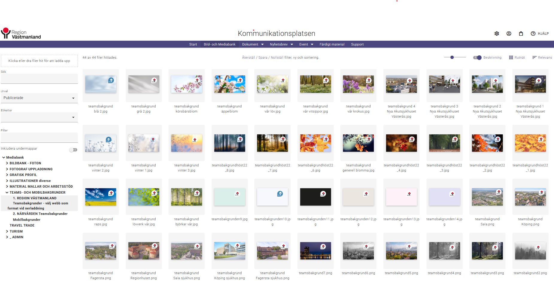 I Kommunikationsplatsens bildbank finns ett flertal teamsbakgrunder att hämta. Det är alltid bra att i både externa och interna möten tydligt visa vilken organisation du hör till.
