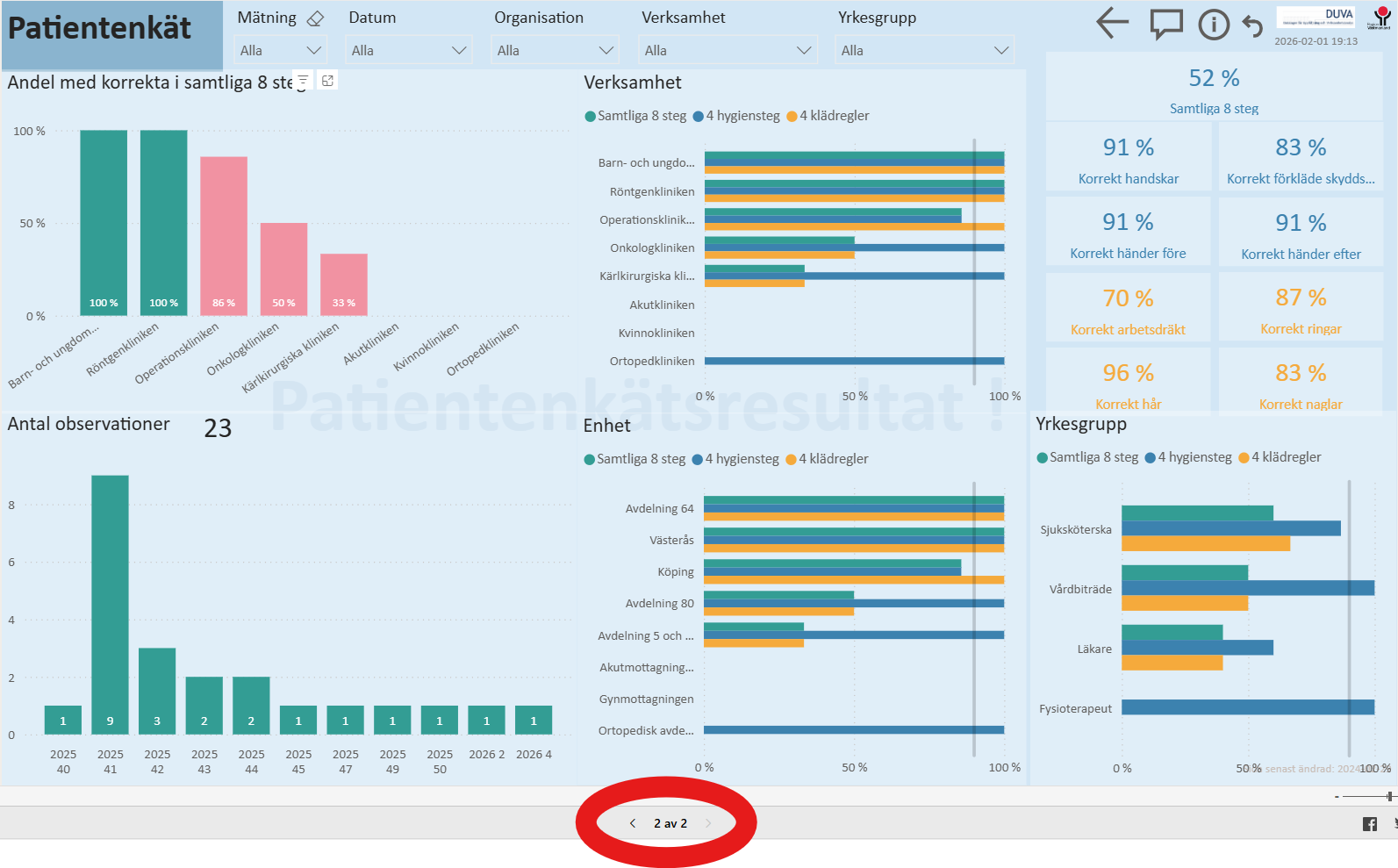 Resultatet från patientobservationerna finns i de interaktiva graferna, på sidan 2. Tryck på pilarna längst ned på sidan för att växla mellan sida 1 och sida 2.